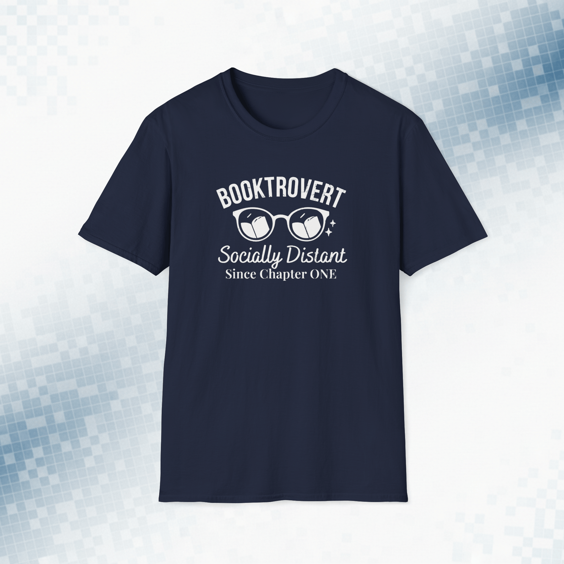 This “Booktrovert – Socially Distant Since Chapter One” tee is for the reader who’s been dodging small talk in favor of plot twists since forever. Featuring retro glasses with open-book reflections and clean vintage typography, it’s the perfect uniform for quiet corners, cozy cafés, and your next chapter binge.