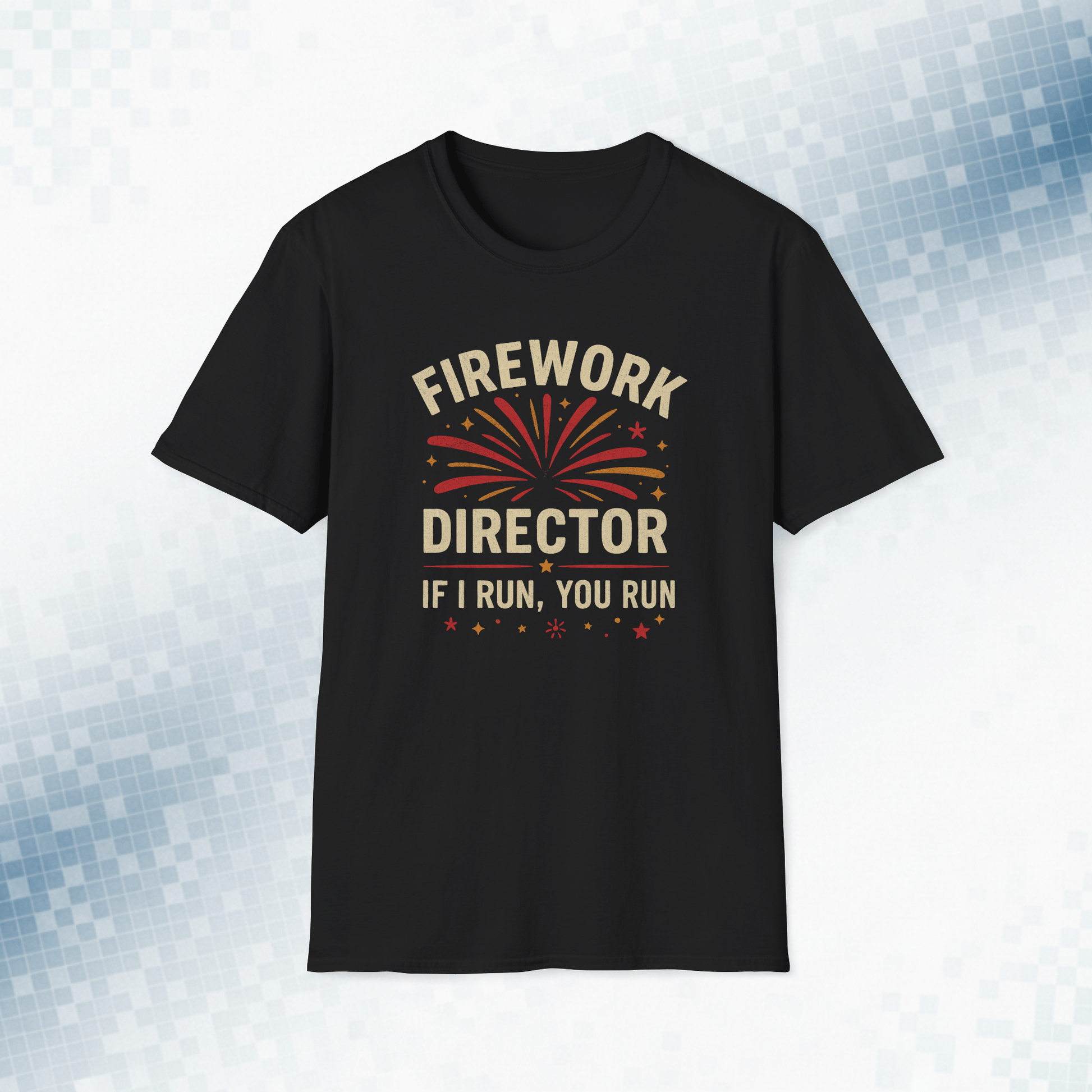 Boom responsibly (or at least look like you’re in charge). This “Firework Director – If I Run, You Run” t-shirt brings explosive humor and vintage flair to your backyard celebrations. With its distressed print and retro Americana colors, it’s the perfect uniform for the neighborhood sparkler captain or anyone who’s ever lit a fuse and hoped for the best.